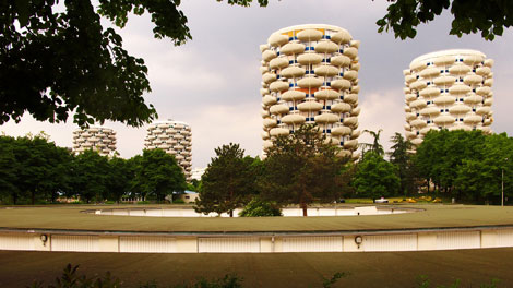 Ci è subito sembrata una cascata di pigne giganti questo complesso abitativo progettato da Gerard Grandval. Les Choux de Creteil ("i cavoli"...anche se a noi sembrano più pigne) costituisce uno complesso residenziale situato a Creteil, un comune nella periferia sud-est di Parigi, Francia. I balconi a forma di petalo garantiscono agli occupanti un po' di privacy, almeno si prende il sole integrale e nessuno ti vede! Solo negli anni 70' si osava tanto!