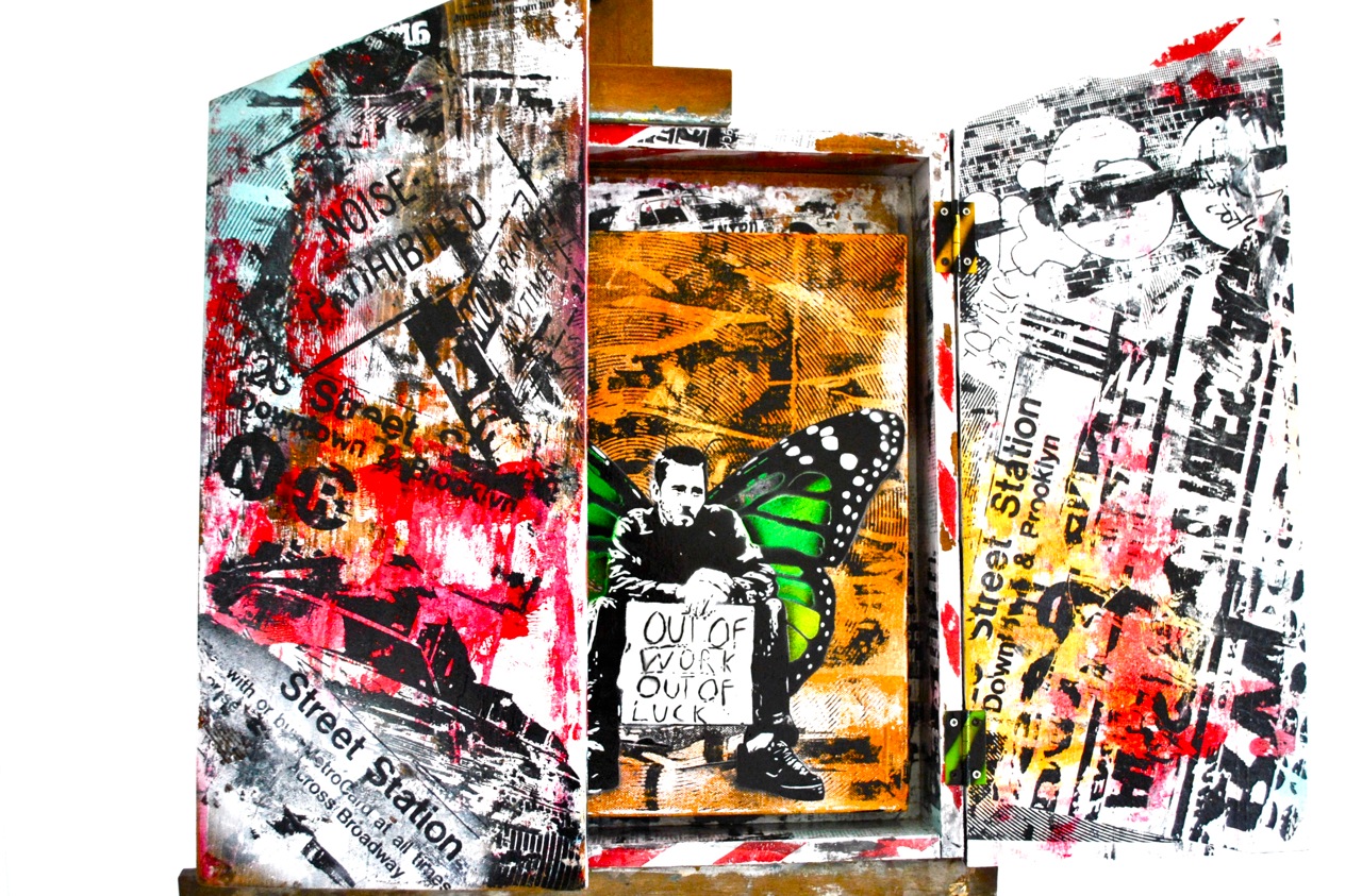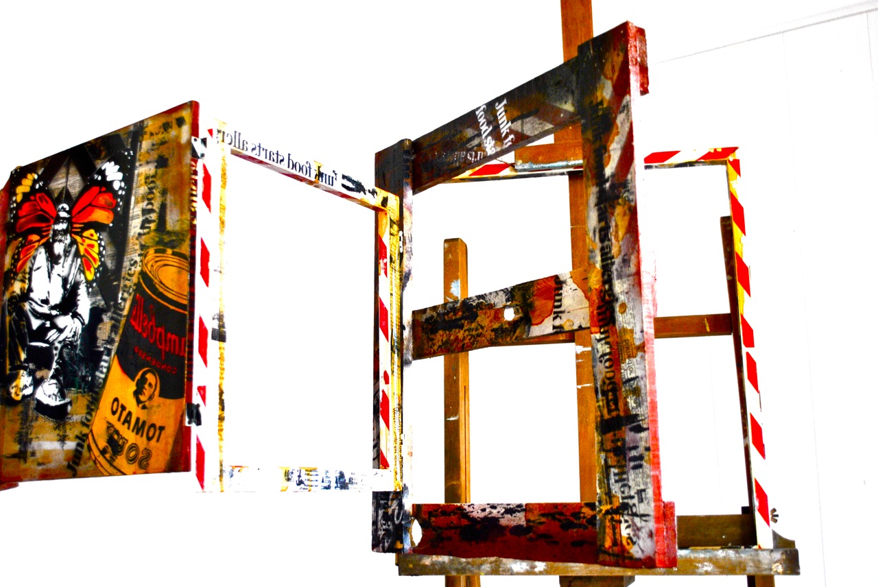 Il suo lavoro, attualmente, consiste nella sperimentazione di tecniche legate alla riproduzione manuale e meccanica dell’immagine su materiali di recupero: dallo stencil al transfer di toner su legno, ferro, plastica e altri supporti di varia natura, senza rimanere vincolato alla bidimensionalità della grafica.