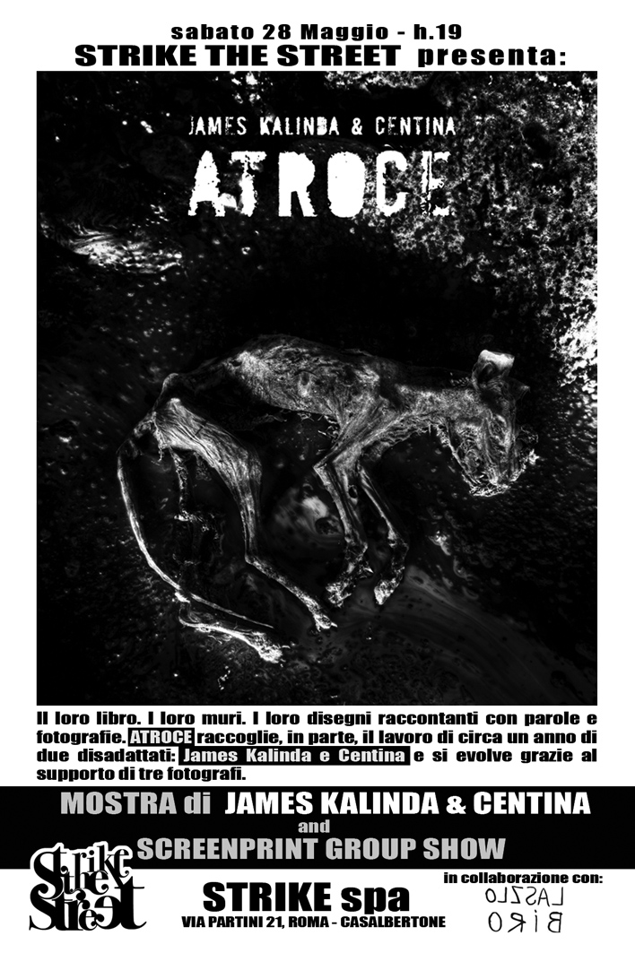 Atroce: una mostra di James Kalinda & Centina e la presentazione dell'omonimo libro a cura di Laszlo Biro.