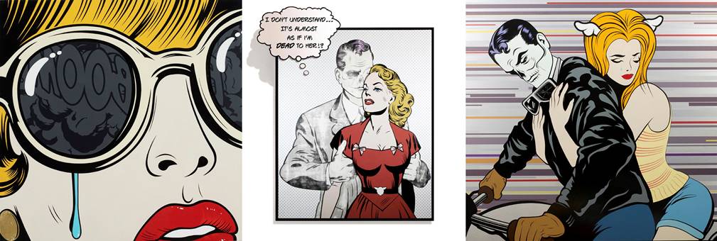 With galleries representing his work in London, New York, Los Angeles, Tokyo and Melbourne, D*Face re-works imagery appropriated from decades of materialistic consumption, including currency, advertising, and comic books, to comment on our conspicuous society.