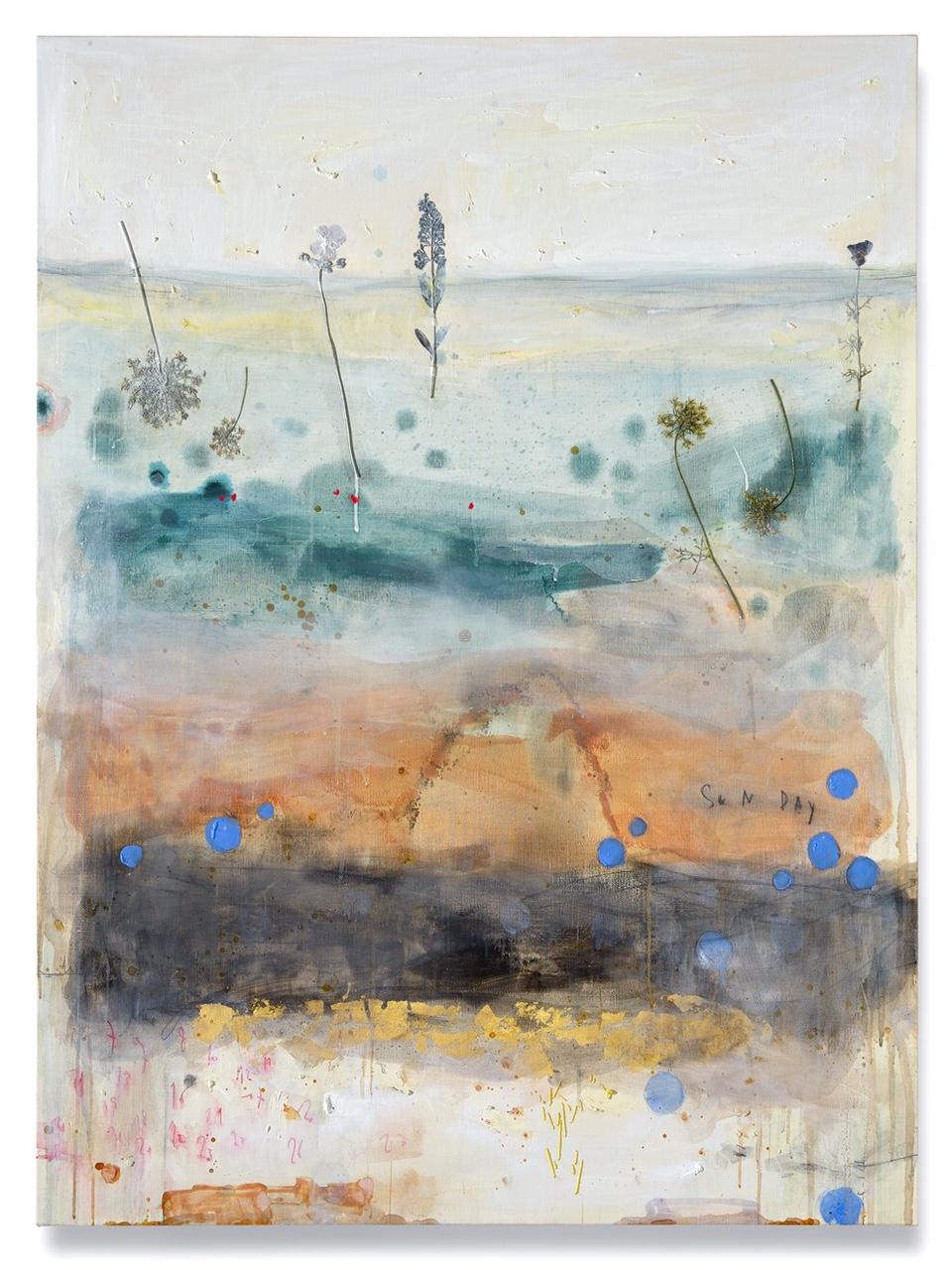 Tele di grande e piccola dimensione tracciano quel viaggio che l’artista percorre quotidianamente nella sua riflessione sulle cose e sulla realtà. Ampi spazi di colore e assenza di forme definite segnano una evoluzione nella produzione di Margherita Martinelli, che si è concentrata nell’ultimo anno sugli aspetti della luce all’interno delle giornate, tracciando un sentiero che attraversa il più ampio spettro di sfumature dal giorno alla notte. Non mancano le opere di anni recenti in cui i simboli – l’abito, la barca, la libellula, le scarpette – hanno segnato nelle tele significativi momenti del viaggio fisico e mentale dell’artista.