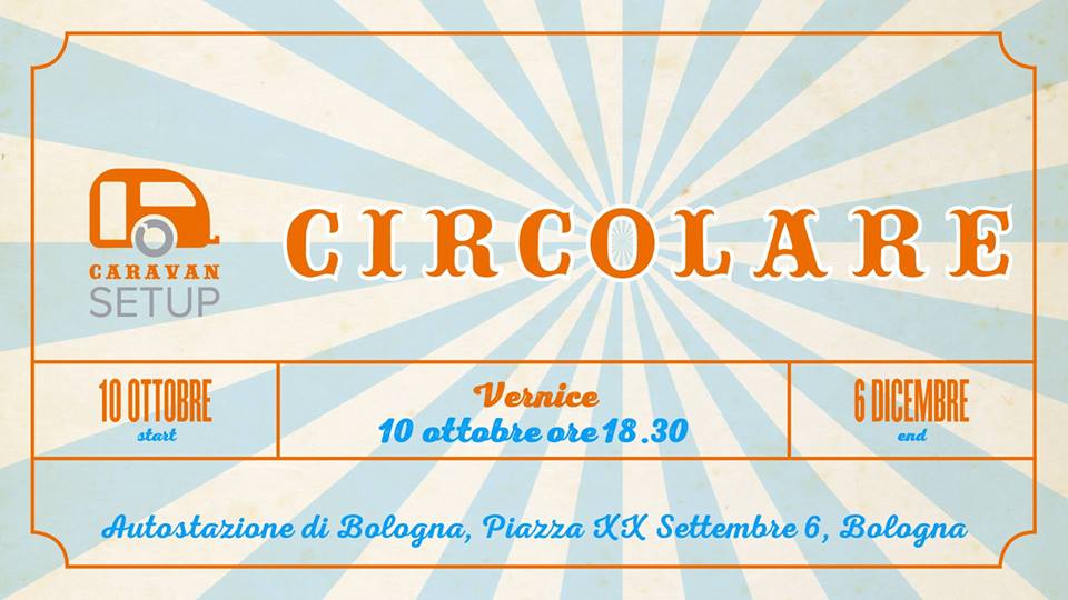 La mostra CIRCOLARE il 10 ottobre alle 18.30 inaugura una nuova e frizzante stagione culturale a Bologna con il nuovo progetto culturale CARAVAN. Dopo le tre stagioni ben collaudate di SetUp Art Fair e con la quarta edizione in preparazione, Simona Gavioli e Alice Zannoni hanno deciso di fondare l'associazione culturale CARAVAN per far vivere lo spazio dell'Autostazione con una programmazione annuale di esposizioni e attività.