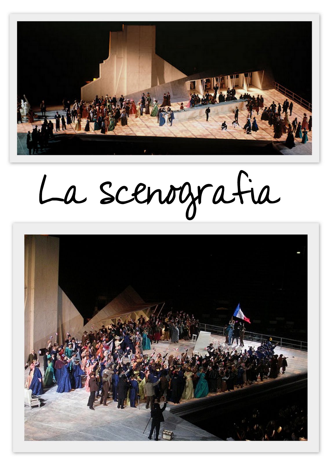 L'allestimento e la scenografia sono stati magnifici, specialmente le scene corali, durante le quali il palcoscenico era invaso da almeno un centinaio di figuranti: ballerine, mangiatori di fuoco, lattaie in bicicletta, spazzini, bambini ...