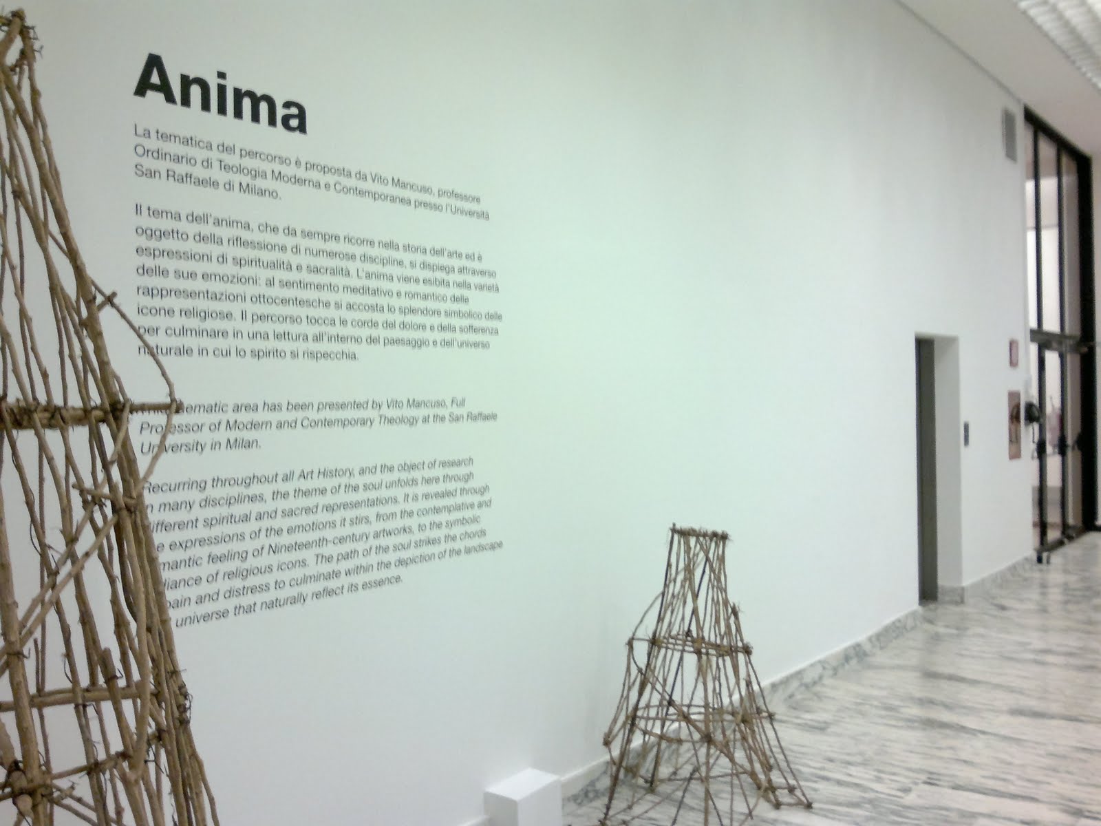 Alla GAM di Torino è in corso un interessante "esperimento" espositivo: le numerose opere possedute dal museo, che spazia dall'arte moderna a quella contemporanea, vengono periodicamente esposte "a turno" secondo un criterio di allestimento tematico per concetti (ora Anima, Linguaggio, Malinconia e Informazione) che riesce a far dialogare lavori di diversa provenienza e diversa epoca, intessendo un interessante percorso di visita.