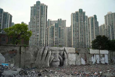 JR takes his Wrinkles of the City project to Shanghai where the last century has been full of ups and downs : from the Japanese occupation, the establishment of the Communist Party, The Liberation, World War II, the end of the foreign concessions, the victory of Mao Zedong over the General Tchang Kaï-Chek’s troops, the Cultural Revolution, the Great Leap Forward to the actual development of the city ...
