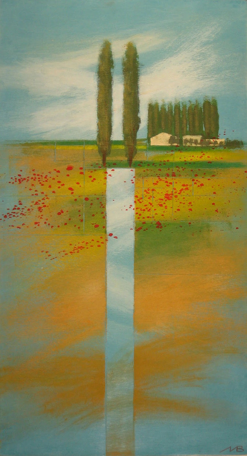 L'artista unisce al tema del paesaggio la potenza espressiva dell'astrattismo, conferendo a ciascun opera originalità e unicità. Il suo è un linguaggio sintetico ma anche rigoroso a mio parere; il quadro che preferisco probabilmente è il Trittico, dipinto in occasione della mostra "Paesaggi rurali" ambientata a San Polo d'Enza all'interno della Torre dell'Orologio, un luogo assolutamente suggestivo e romantico che consiglio di visitare.