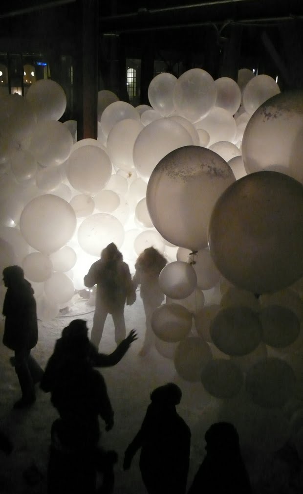 A Essen negli stabilimenti di un ex miniera di carbone per calarsi in un mare di bolle di sapone realizzati con palloncini bianchi gonfiati un po' ad elio un po' ad aria. Una schiuma trasparente che metaforicamente lava via il nero della fuliggine e del carbone! In più ad aumentare l'esperienza sensoriale una musica leggera si alza da quel mare lattiginoso! Big Impact! Questa installazione è stata realizzata dallo studio Raumlaborberlin. A voi qualche scatto il resto qui