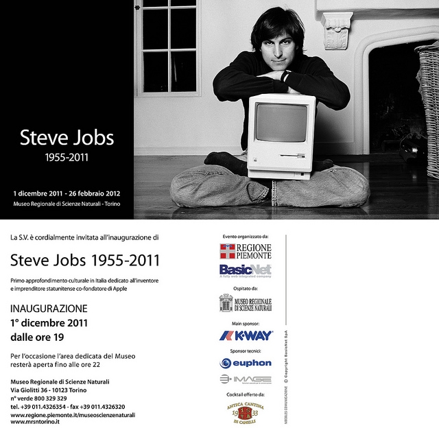STEVE JOBS 1955-2011 - MOSTRA A TORINO Autore Gio, 24/11/2011 - 15:52 | Dario Ujetto Ecco l’invito ufficiale per l’inaugurazione della mostra su Steve Jobs al Museo di Scienze Naturali di Torino.