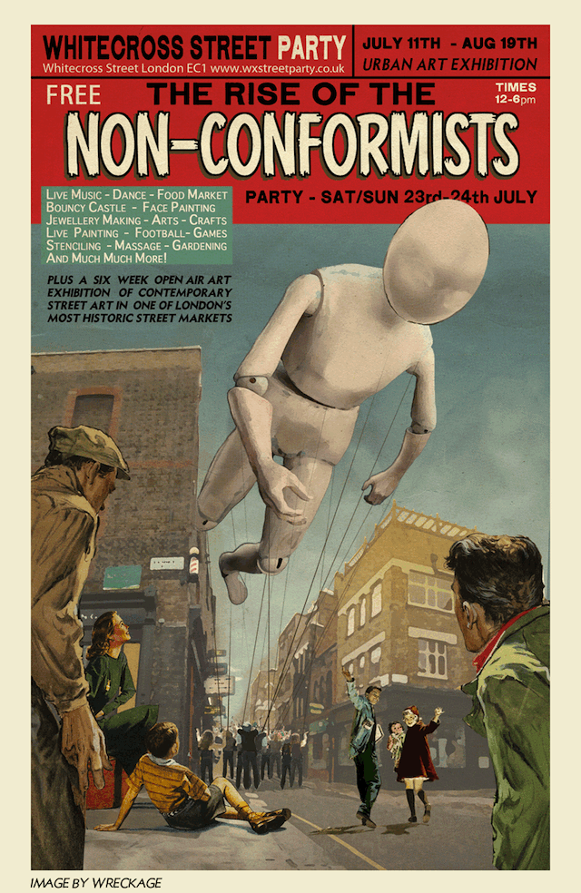 The Whitecross Street Party: Rise of the non-conformists is a two-day street party and four week exhibition featuring some of the world’s most creative pranksters and musical mischief makers.