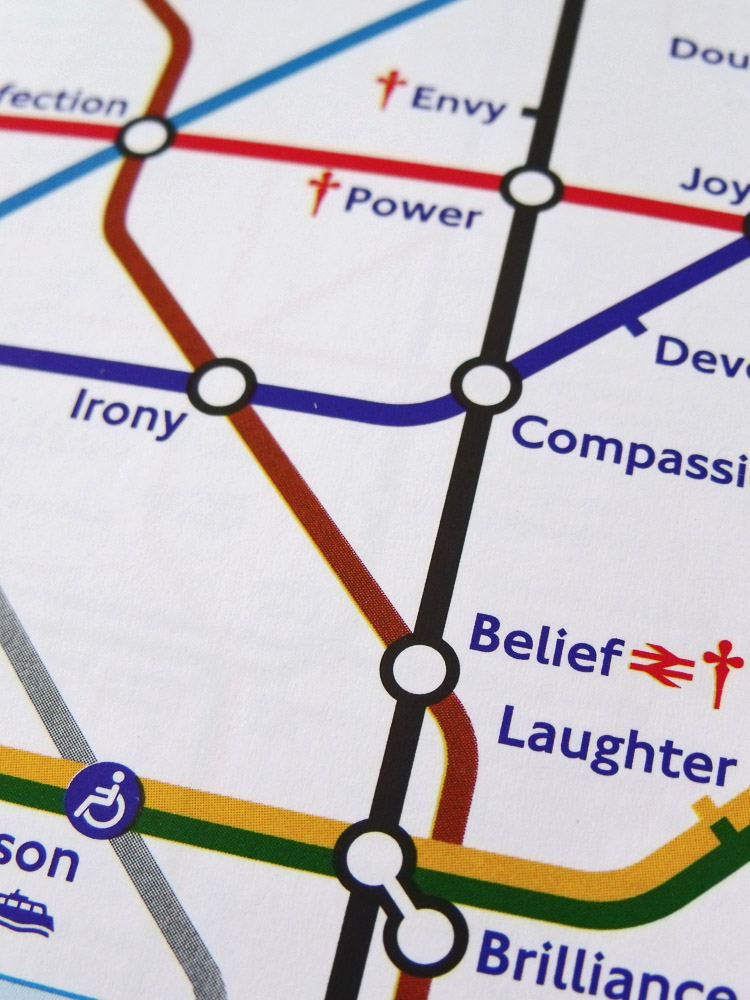 Occhio alla mappa della famosa metropitana di Londra, da Maggio è stata rivisitata dall'artista Barbara Kruger! In occasione della dodicesima edizione del progetto "Art on the Underground" la Kruger ha sostituito i nomi delle più importanti stazioni con le sensazioni che lei ha provato in quel posto! Così potrete fare una capatina ad "ORGOGLIO", scendere per fare shopping a "FAMA" e poi tirare dritto fino a "RAGIONE"! Profondo no? :)