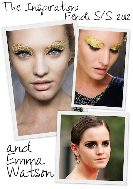 Un make-up da vere esperte! La pellicola dorata potete trovarla nelle mesticherie e negozi di bricolage, non esagerate però con l'applicazione perché non è stata ideata per il viso come quelle da make-up artist professionisti, quindi limitatevi a qualche piccolo pezzo ai lati dell'occhio, come per il make-up di Emma Watson. Per applicare la pellicola, stendete della vasellina sul dorso della mano e con un batufolo di cotone tamponate leggermente. usate il batufolo per prendere i vostri pezzetti di pellicola ed applicarli sull'occhio. Usate poi un pennello bagnato per rifinire il lavoro.