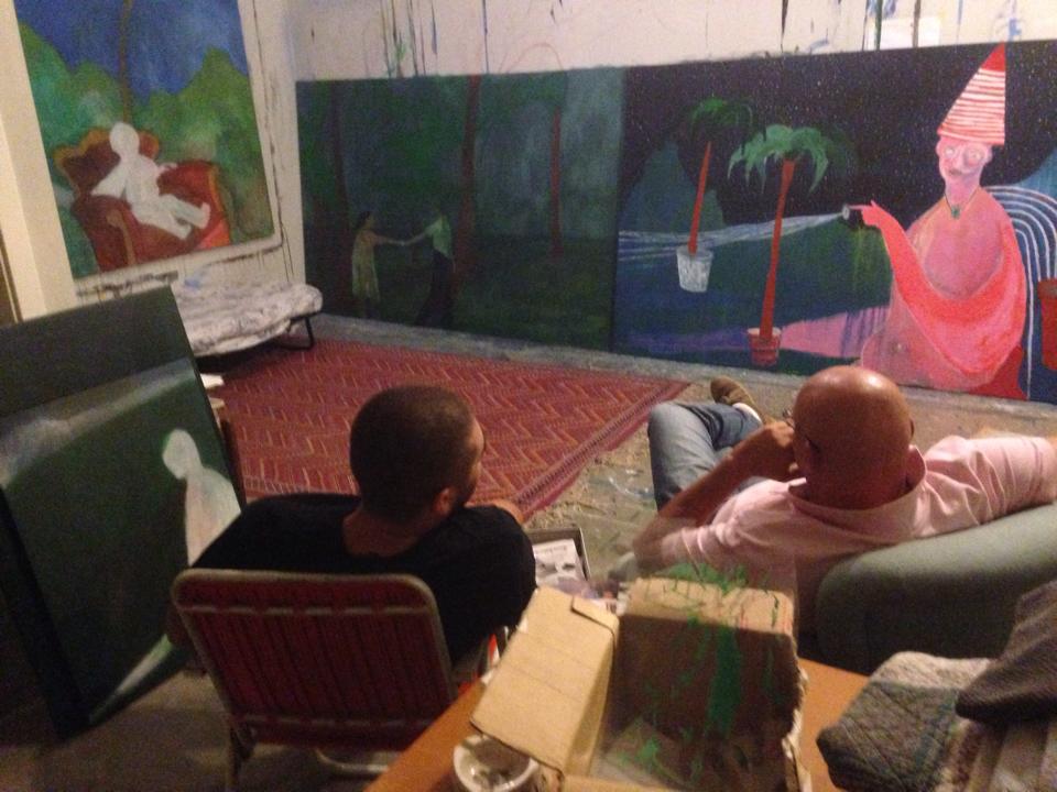 Parlare di progetti futuri, mostre, ascoltare opinioni e quando possibile dare qualche consiglio, sono le cose che mi coinvolgono e piacciono di più... specie se comodamente seduto in poltrona davanti a tre grandi tele in fase di esecuzione...