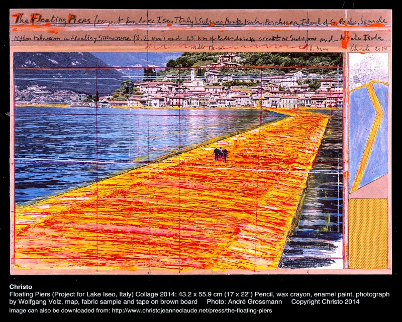 The Floating Piers sarà il primo progetto su larga scala dai tempi di The Gates, realizzato da Christo e Jeanne-Claude nel 2005. Come tutti i loro lavori, i fondi per la realizzazione di questa opera provengono interamente dalla vendita delle opere di Christo.