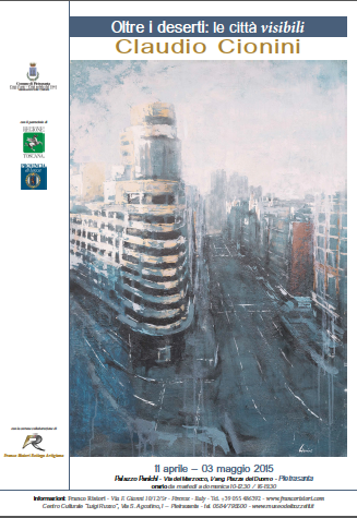 Pietrasanta (LU), 31 marzo 2015 _Le grandi città, metropoli europee o internazionali, sono al centro dell'originale ricerca pittorica del giovane artista toscano Claudio Cionini. Da sabato 11 aprile, nei suggestivi spazi di Palazzo Panichi, presenta “Oltre i deserti: le città visibili”, la sua più recente produzione, anni 2013-15. La mostra, curata da Riccardo Ferrucci, con l’allestimento dell’arch. Luca Masi, è promossa dal Comune di Pietrasanta ed organizzata dalla Bottega Artigiana Franco Ristori. Raccoglie circa sessanta dipinti dedicati alle grandi metropoli, le più ritratte sono New York e Parigi, poi compaiono le immagini di altre città: Londra, Madrid, Barcellona, Bonn, Tokyo, Bangkok, Buenos Aires, Seattle, Chicago. Un giro del mondo pennellata dopo pennellata.