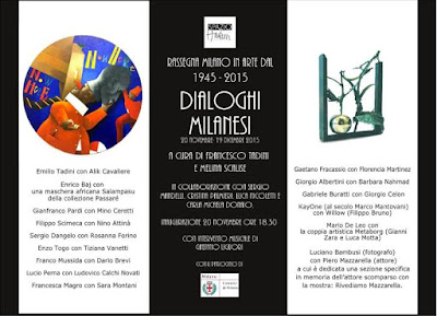 Per la mostra Dialoghi milanesi siamo, poi, andati a cercare altri esempi , anche recentissimi, di dialoghi d’arte. Così abbiamo in mostra Filippo Scimeca con Nino Attinà, Sergio Dangelo con Rosanna Forino, Enzo Togo con Tiziana Vanetti, Franco Mussida con Dario Brevi, Lucio Perna con Ludovico Calchi Novati, Francesca Magro con Sara Montani, Gaetano Fracassio con Florencia Martinez, Giorgio Albertini con Barbara Nahmad, Gabriele Buratti con Giorgio Celon, KayOne (al secolo Marco Mantovani) con Willow (Filippo Bruno), Mario De Leo con la coppia artistica Metaborg (Gianni Zara e Luca Motta).