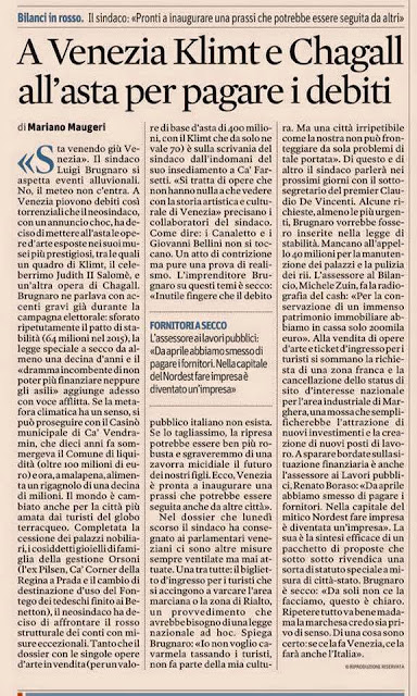 "Il sindaco di Venezia Brugnaro vuole mettere in vendita