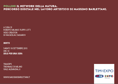 MILANO. Una mostra che di per sé è un evento pensato per svilupparsi e concludersi in una sola sera. In questo contesto lo Spazio Tim4EXPO alla Triennale di Milano (Viale Alemagna, 6), dalle ore 18 alle 22 di sabato 19 settembre, presenta “Polline/il network della natura”, un percorso digitale nel lavoro artistico di Massimo Barlettani, curato da Roberto Milani e Filippo Lotti con i video di Viacheslav Zakharov.