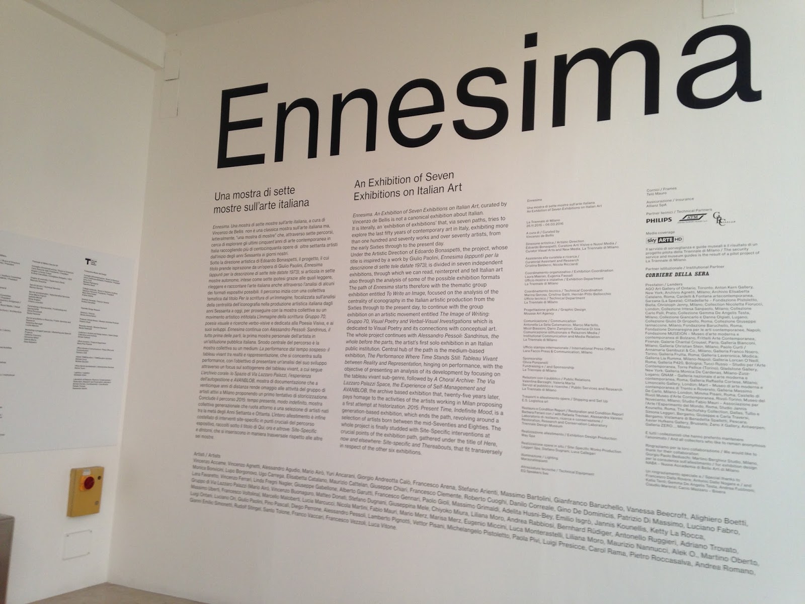 Di "ENNESIMA-una mostra di sette mostre sull'arte italiana" curata da Vincenzo de Bellis ed allestita fino al prossimo 6 marzo 2016, in Triennale a Milano, vi avevo dato notizia tempo fa (vedi http://lastanzaprivatadellarte.blogspot.it/2015/11/ennesima-una-mostra-di-sette-mostre.html)...