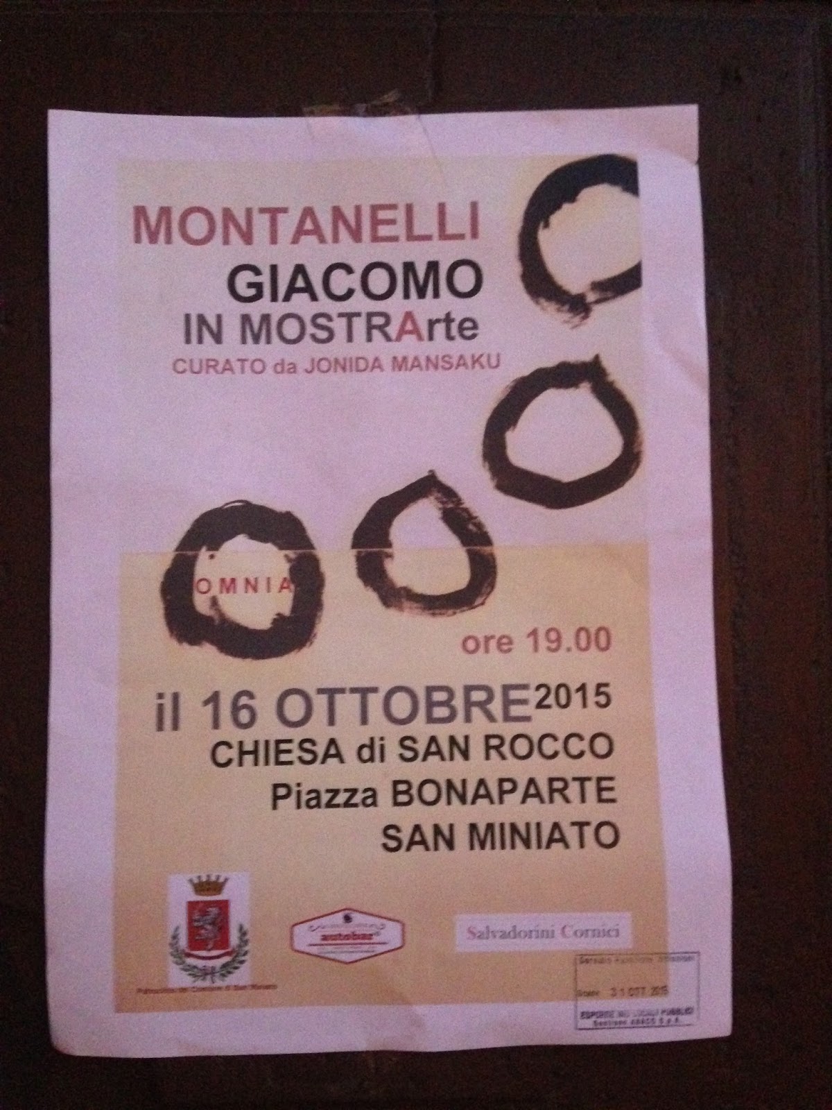 Sono stato all'inaugurazione di "OMNIA" ( vedi http://lastanzaprivatadellarte.blogspot.it/2015/10/omnia-di-giacomo-montanelli.html ) la personale di Giacomo Montanelli curata da Jonida Mansaku,