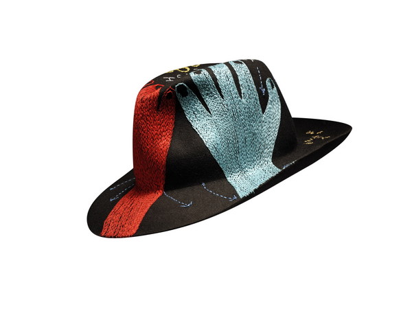 Le mani ricamate sul cappello rappresentano sia la manualità quindi