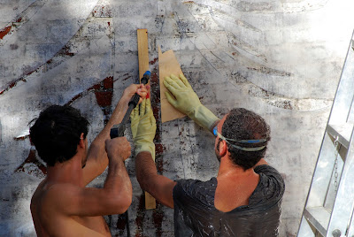 It is a 3meter stencil made totally with water, became a natural way to paint respecting environment.