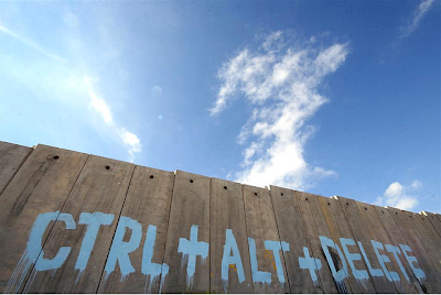 Un bel ctrl+alt+del da tastiera per abbattere i muri e le divisioni rullato sul muro della West Bank in Palestina