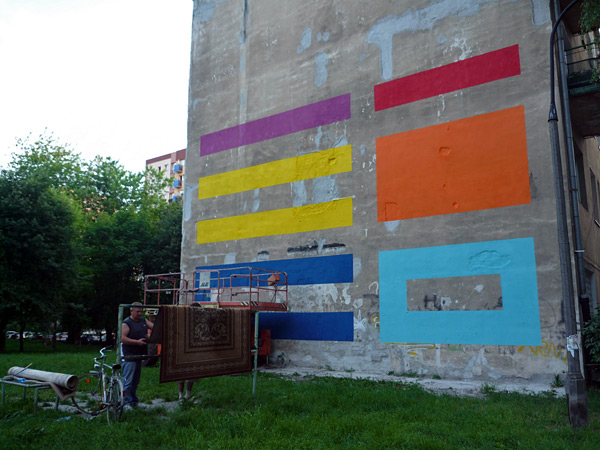 "At the end of May 2011, I went for a couple of weeks to Warsaw to paint two big murals on the facades of an old building that was constructed before World War II (very few of these buildings are still intact because of the intense bombings). The project was part of update 2011, an event organized by the Vlepvnet foundation. Every year they invite local and international artists to work in the city. The building is located on Zlota street in the Wola neighborhood, close to the central station. Thanks to the help from the guys from vlepvnet, the volunteers and the support of the neighbors, we managed to finished the two murals in only seven days".