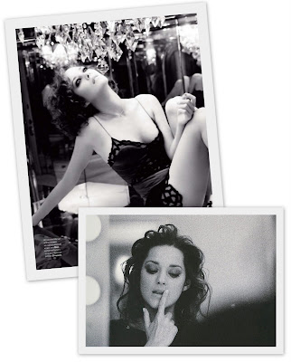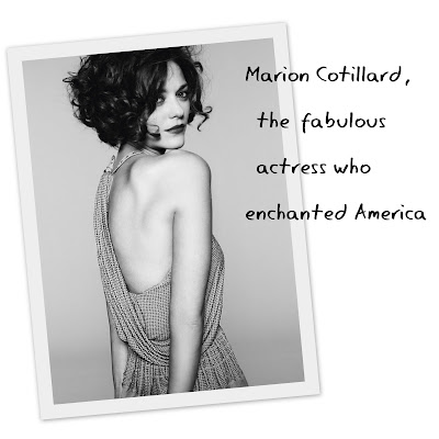 Marion Cotillard, attrice camaleontica, che riesce a sembrare fragilissima, così come spesso ci appaiono le eleganti e malinconiche francesi, ma anche forte e detrminata come le donne americane. Sarà per questo che in america si sono innamorati di lei, che dopo film meno noti, forse più recherché, in patria, adesso è stata lanciata dall'industria hollywoodiana nello star-system a pieno titolo. Occhi di ghiaccio, sguardo deciso ma con un velo di dolcezza, il suo stile rispecchia quest'altalena di contrasti ed spesso avanguardistico ma anche classico. Marion si aggiunge alla lista delle donne di spettacolo che ammiro e che seguo. Per chi ancora non la conoscesse, si conceda la visione di "la vie en rose" dove interpreta la chanseur francese icona del 20° secolo, Edith Piaf.