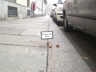 Questa l'ironica provocazione dell'artista Opiemme, in un intervento di arte pubblica, intitolato La Maleducazione Uccide.