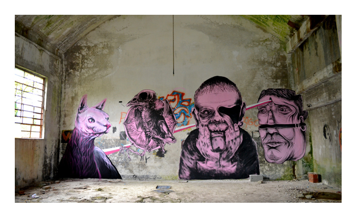 Una giornata in fabbrica, in via Foggia 28. Sui tetti. Roa dà vita alla sua tartaruga, Pixel...