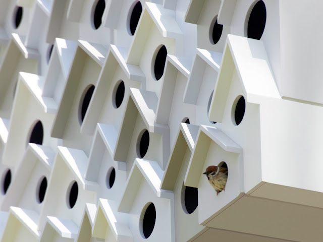 Ci piace immaginare come in queste accoglienti villette a schiera i volatili possono scambiarsi, consigli, rametti...tweet.