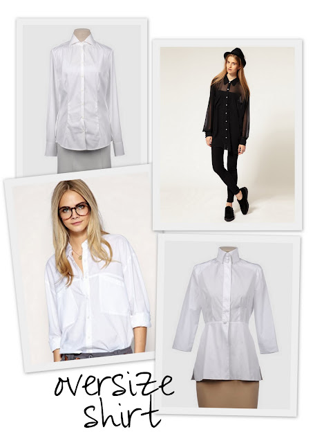 | camicia bianca Seventy su Yoox, camicia nera in chiffon di American Apparel su Asos, camicia bianca oversize Asos, camicia Lagerfeld Gallery su Yoox |