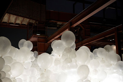 A Essen negli stabilimenti di un ex miniera di carbone per calarsi in un mare di bolle di sapone realizzati con palloncini bianchi gonfiati un po' ad elio un po' ad aria. Una schiuma trasparente che metaforicamente lava via il nero della fuliggine e del carbone! In più ad aumentare l'esperienza sensoriale una musica leggera si alza da quel mare lattiginoso! Big Impact! Questa installazione è stata realizzata dallo studio Raumlaborberlin. A voi qualche scatto il resto qui