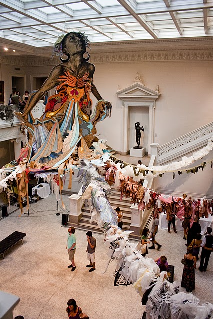 "This exhibition launches a series of commissioned site-specific works for NOMA's Great Hall," said NOMA Director Susan Taylor. "Each summer, the museum plans to work with an artist to create a project for this dramaticÊspace. Whether inspired by New Orleans or the space itself, we hope to engage artists and our community in an ongoing conversation about contemporary art. Swoon's Thalassa is a dramatic, thought-provoking piece that will speak to all audiences."