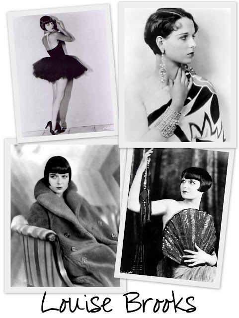 Che vita quella di Louise Brooks! Inizia la sua carriera come ballerina, al fianco di Martha Graham (icona della danza contemporanea) e viene notata sul palco di un teatro di Broadway da Charlie Chaplin, con cui avrà una breve relazione. Entra nella scuderia della Paramount Pictures e debutta con un ruolo importante interpretando una barbona nomade. Lascia ben presto il cinema commerciale americano per dedicarsi all'espressionismo tedesco. Nei film girati da G. W. Pabst, "Pandora's box" e "Diary of a lost girl" interpreta ruoli all'avanguardia e controversi. Rifiutando di apparire in "Public Enemy", decreta la fine della sua carriera da attrice, dovuta anche a screzi con vari produttori. Fa la commessa, si arrangia con qualche lavoretto, fino a che non finisce per diventare prostituta d'alto bordo. Il suo caschetto di capelli neri corvini è stata la sua caratteristica più famosa. Tagliato perfettamente, incorniciava il suo sguardo penetrante e dava un'aria di mistero ad un viso tutto sommato, da ragazza della porta accanto. Portava spesso pelliccie, lunghi fili di perle e cappellini a cloche che esaltavano il taglio a boule.