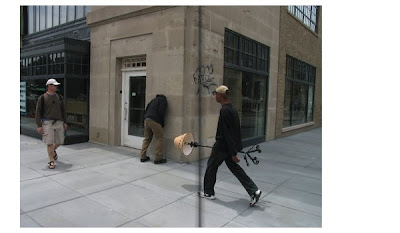 This expert staging of his work provokes various reactions from passersby and expands his interventions into powerful performances.