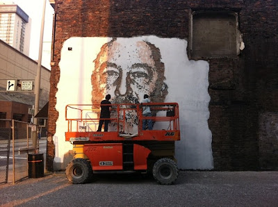 Check out the new mural by artist Alexandre Farto-aka Vhils-on the side of Mainstay Rock Bar.